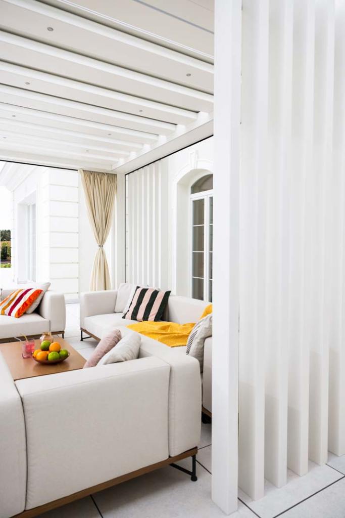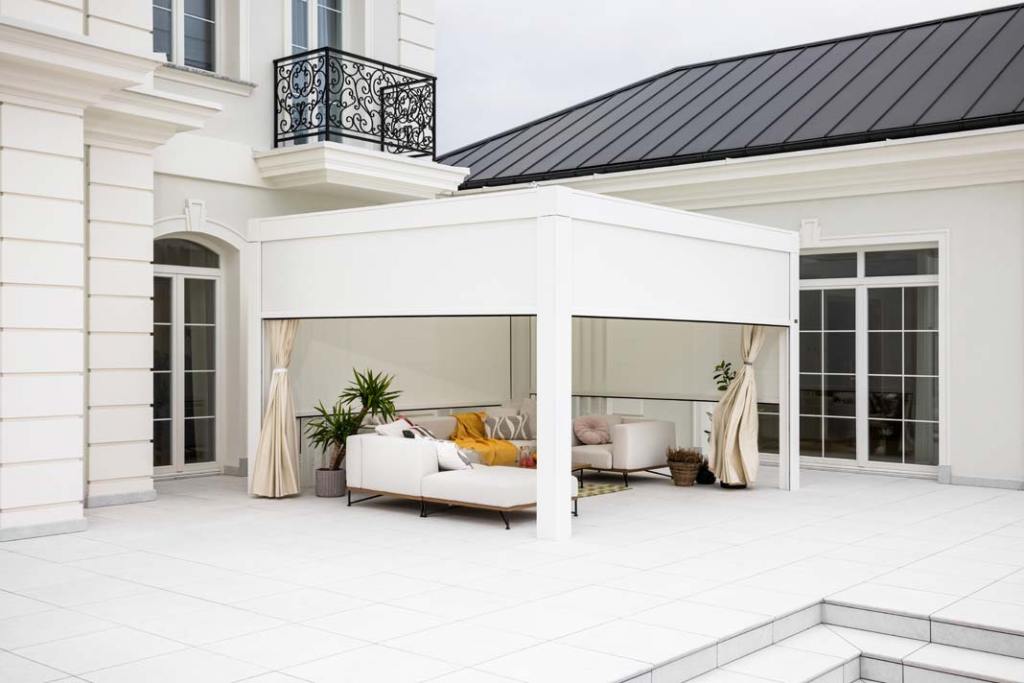 P.R.: Dzięki zaawansowanym systemom zadaszeń nie mamy dziś w zasadzie żadnych ograniczeń. Możemy daną strefę zacieniać, a jednocześnie uzyskać dopływ odpowiedniej ilości światła. Zapewnić sobie szczelną ochronę przed deszczem, osłonić taras od wiatru, oszklić, wprowadzić klimatyczne oświetlenie lub – w chłodne wieczory – dodatkowo ogrzać. Zadaszenie możemy dostosowywać do sytuacji, sterować nim za pomocą aplikacji albo wyposażyć w odpowiednie czujniki, które w przypadku nagłej zmiany warunków atmosferycznych zareagują w odpowiedni sposób, zabezpieczając naszą strefę. Dodatkowe pomieszczenie pod pergolą lub szklanym zadaszeniem może stać się drugą kuchnią, pokojem dziennym, a nawet siłownią czy przydomowym SPA.