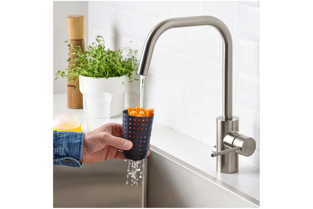 Świeże warzywa i owoce doskonale sprawdzają się jako lekkie, zdrowe przekąski. Chcesz zabrać je ze sobą do pracy albo dać dziecku do szkoły? Przyda ci się poręczny pojemnik Splitterny od IKEA. Ma przegródkę na orzechy i inne suche produkty oraz sitko, w którym można zarówno płukać, jak i przechowywać owoce. Nadmiar wody spływa do pojemnika – dzięki czemu żywność pozostaje świeża.