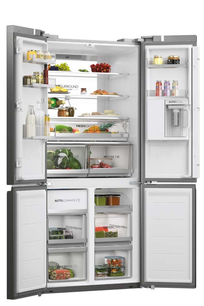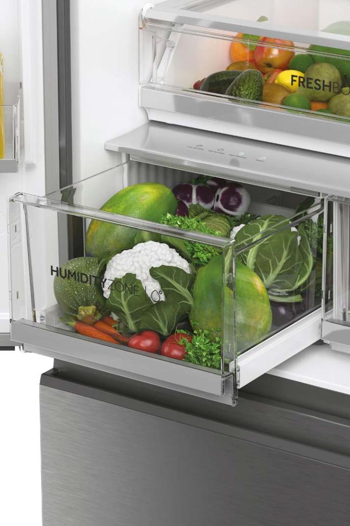 Lodówka Haier Multidoor 7 HCW7819EHMP odpowiada na potrzeby współczesnej rodziny. Praktyczna strefa wilgotności Humidity Zone utrzymuje świeżość owoców i warzyw dwa razy dłużej, zachowując ich smak oraz wartości odżywcze. Dzieje się tak dzięki technologii HCS, która zapewnia wilgotność na poziomie 90% i automatycznie zarządza jej stanem. Dłuższy termin przydatności do spożycia to mniej zmarnowanej żywności i korzyść dla domowego budżetu.