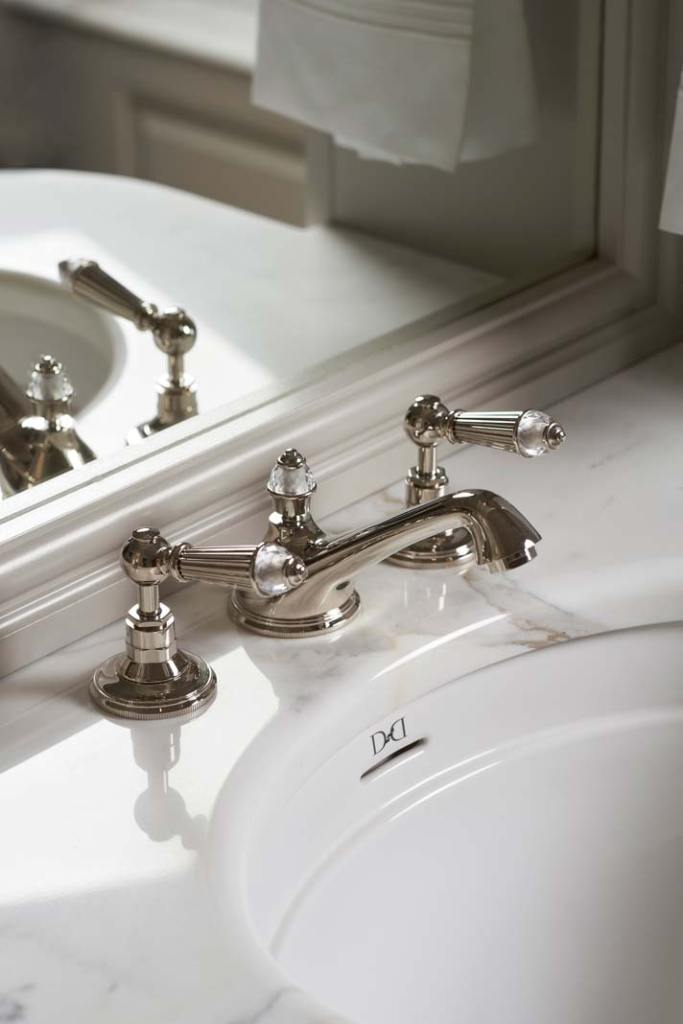 Trzyotworowa bateria Diamond od Devon & Devon – uwagę przyciągają zwłaszcza detale wykonane z kryształu o diamentowym szlifie.