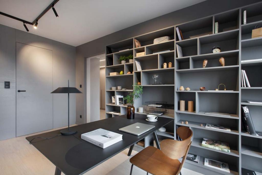Architektka Natalia Jargiełło jest miłośniczką północnej estetyki. Ceni minimalizm i skandynawski design, w którym forma podąża za funkcją. Projektując wnętrze 170‑metrowego apartamentu mogła dać wyraz swoim upodobaniom. Wystrój gabinetu, zatopionego w odcieniach szarości, sprzyja skupieniu. Jest prosto i nowocześnie, tak aby nie rozpraszać uwagi.